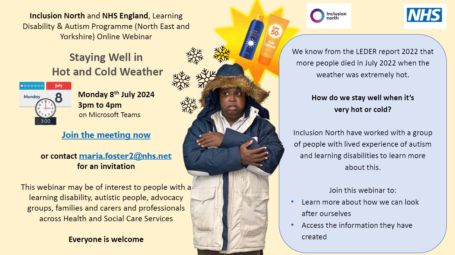 This webinar may be of interest to people with a learning disability, autistic people, advocacy groups, families and carers and professionals across Health and Social
